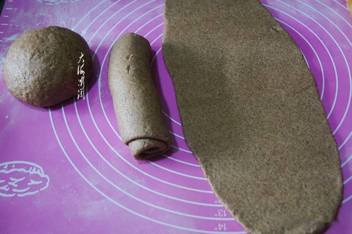 轻松好的面团分红3个面剂子,擀成长卵形的饼,从一头卷起来。