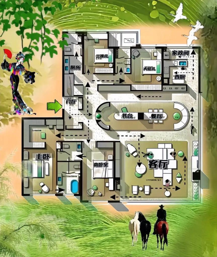 我可爱这么的户型,小玄关,大洄游,正客厅,186㎡开悟了,通透,知性有书香气,三不雅很正的屋子!